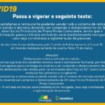– As pastelarias e restaurante poderão vender sob o sistema de retirada em balcão e delivery, devendo ser cumprido o distanciamento de 3m descrito no Protocolo do Plano Minas Consciente.