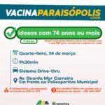 A 1ª dose da vacina para idosos com 74 anos ou mais será aplicada no seguinte dia e horário: