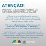 O Departamento de Saúde de Paraisópolis informa que há um grupo de jovens que circulam pela cidade realizando um suposto levantamento de informações para a Saúde.