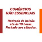 – Comércios não essenciais: Retirada de balcão até ás 18h.