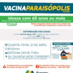 A 1ª dose da vacina contra a COVID-19 para idosos com 65 anos ou mais será aplicada no seguinte dia e horário. (Atenção! Idosos com mais de 65 anos que ainda não se vacinaram podem comparecer nesta etapa):