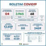 – Total de casos em tratamento: 04 pessoas, sendo 04 em isolamento domiciliar e 00 internados.