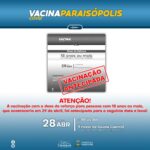 A vacinação com a dose de reforço para pessoas com 18 anos ou mais, que aconteceria em 29 de abril, sexta-feira, foi antecipada para a seguinte data e local: