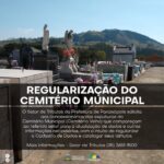 O Setor de Tributos da Prefeitura de Paraisópolis solicita aos concessionários das sepulturas do Cemitério Municipal (Cemitério Velho) que compareçam ao referido setor para a atualização de dados e outras informações necessárias, com o intuito de regularizar o Cadastro de Dados e catalogar seus túmulos.