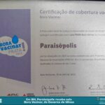 As certificações foram entregues pelo governador Romeu Zema e pelo procurador-geral de Justiça do MPMG, Jarbas Soares Júnior. Paraisópolis recebeu o selo Prata pelas mãos do prefeito éverton de Assis, da diretora de Saúde, Josy Cabral; e da coordenadora de imunização, Fabiana Cristina.