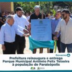 O Parque Municipal Antonio Felix Teixeira foi reinaugurado na manhã de sábado (22). A cerimônia de reabertura levou centenas de pessoas ao local que foi totalmente reformulado. O prefeito éverton de Assis e o vice-prefeito Alex Braga descerraram a placa na companhia do deputado federal Rafael Simões, do presidente da Câmara Municipal, Neto Félix, e de seu pai, Antônio Felix Teixeira Filho.