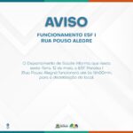 AVISO – Funcionamento ESF I – Rua Pouso Alegre