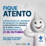 A atualização da caderneta de vacinação de crianças e adolescentes menores de 15 anos começa, em Paraisópolis, em 21 de outubro.