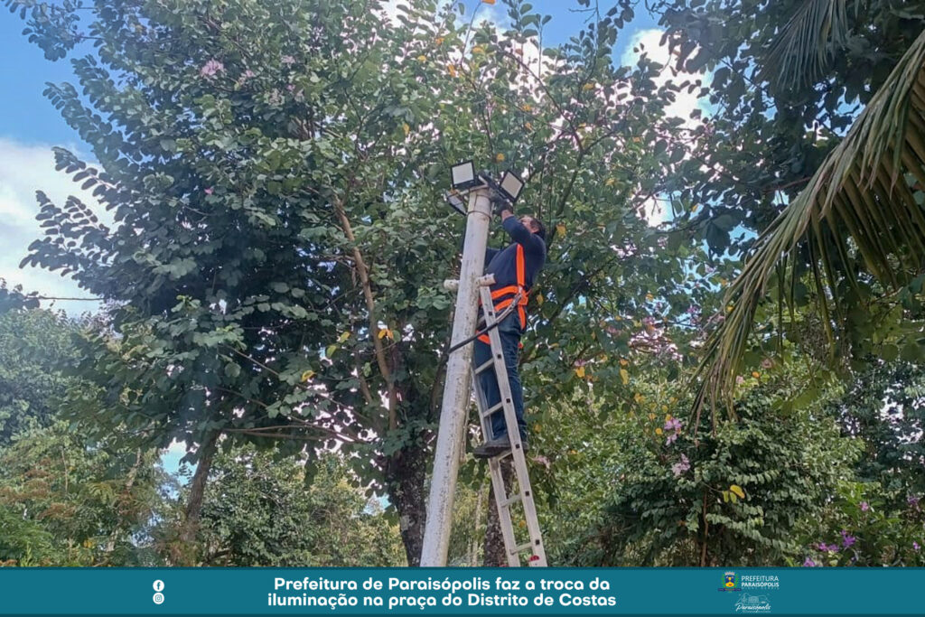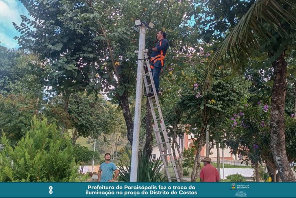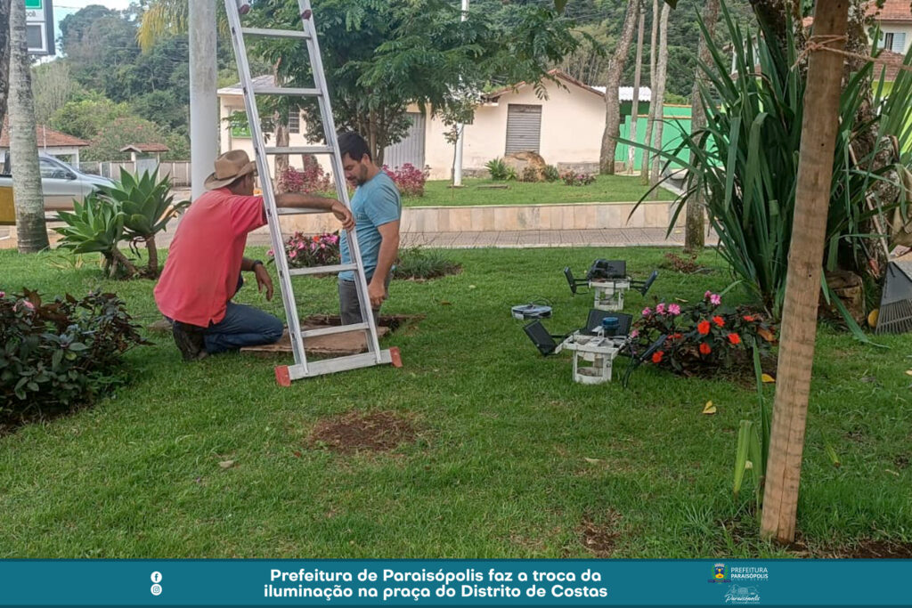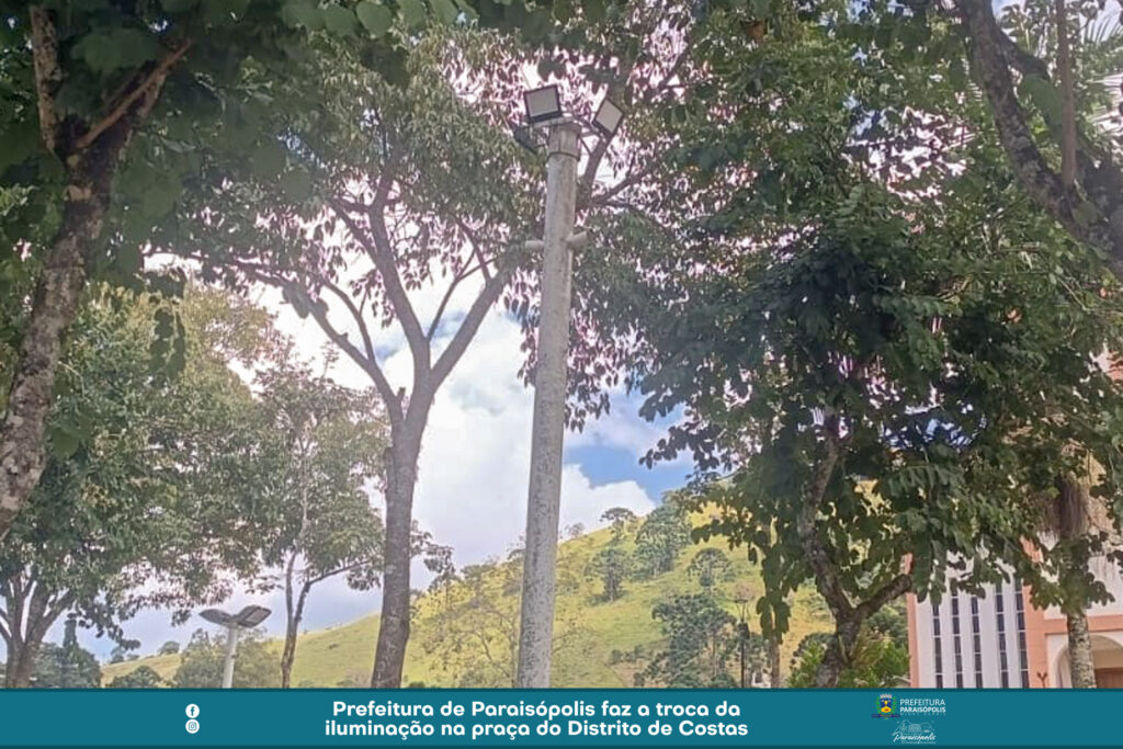 Prefeitura de Paraisópolis faz a troca da iluminação na praça do Distrito de Costas