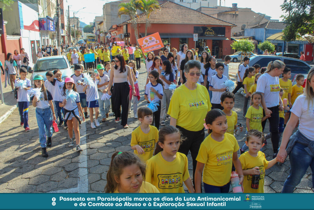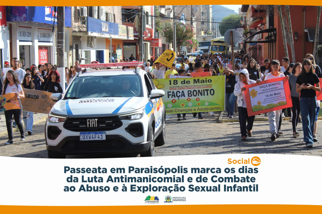 18 de maio marca o Dia Nacional da Luta Antimanicomial e o Dia Nacional de Combate ao Abuso e à Exploração Sexual Infantil. Para comemorar e lembrar da importância dessa data, a Prefeitura de Paraisópolis, através dos setores de Saúde Mental e de Assistência Social, realizou uma passeata pelas ruas centrais da cidade, na sexta-feira (17).