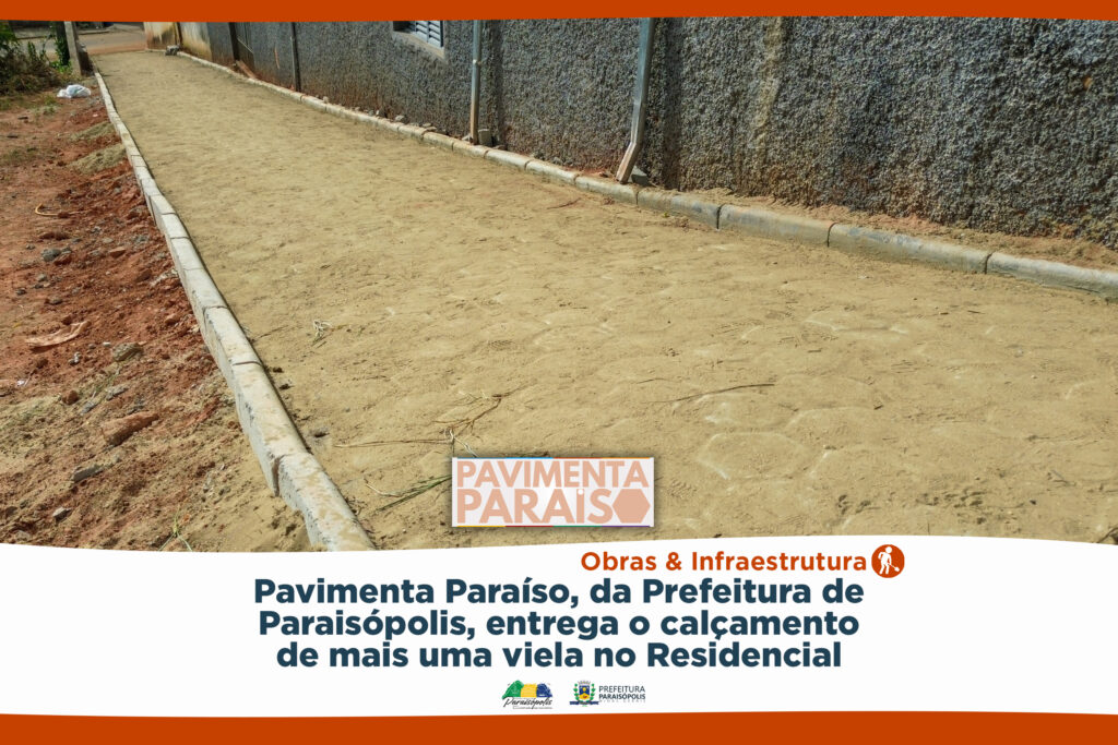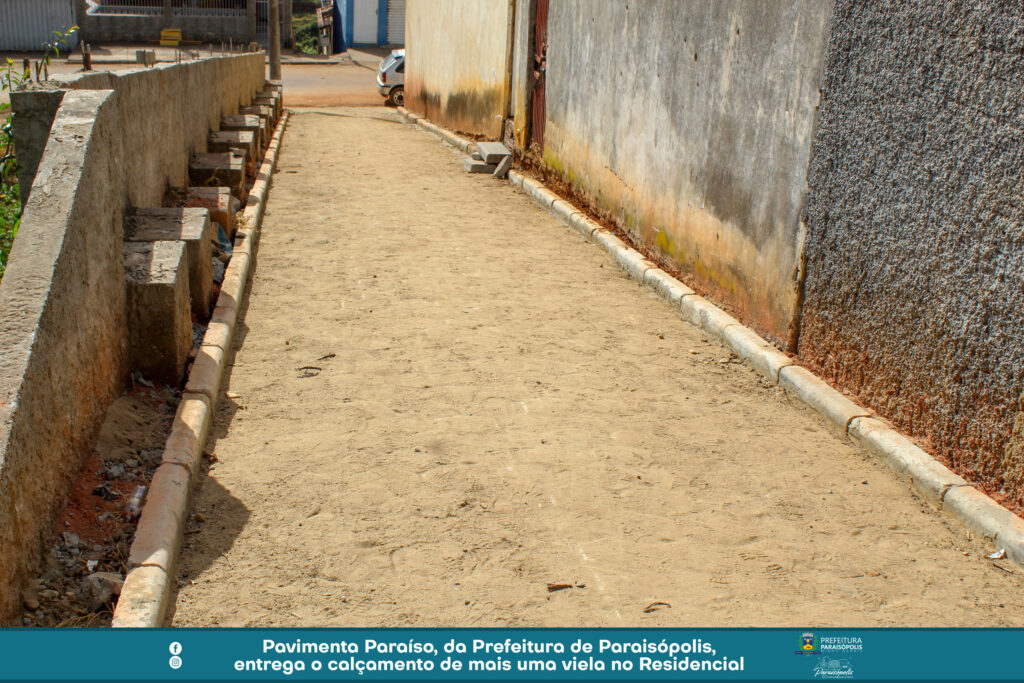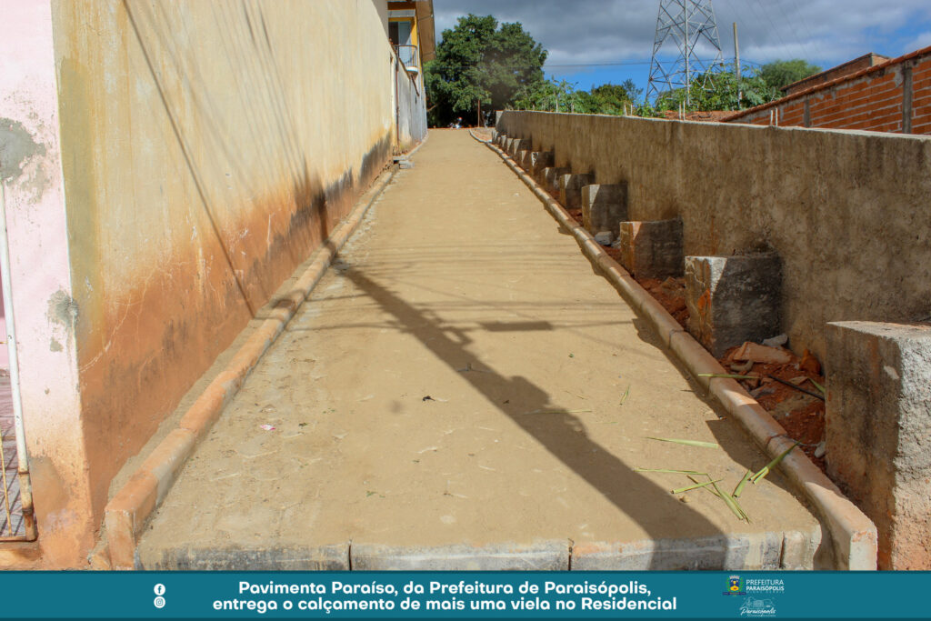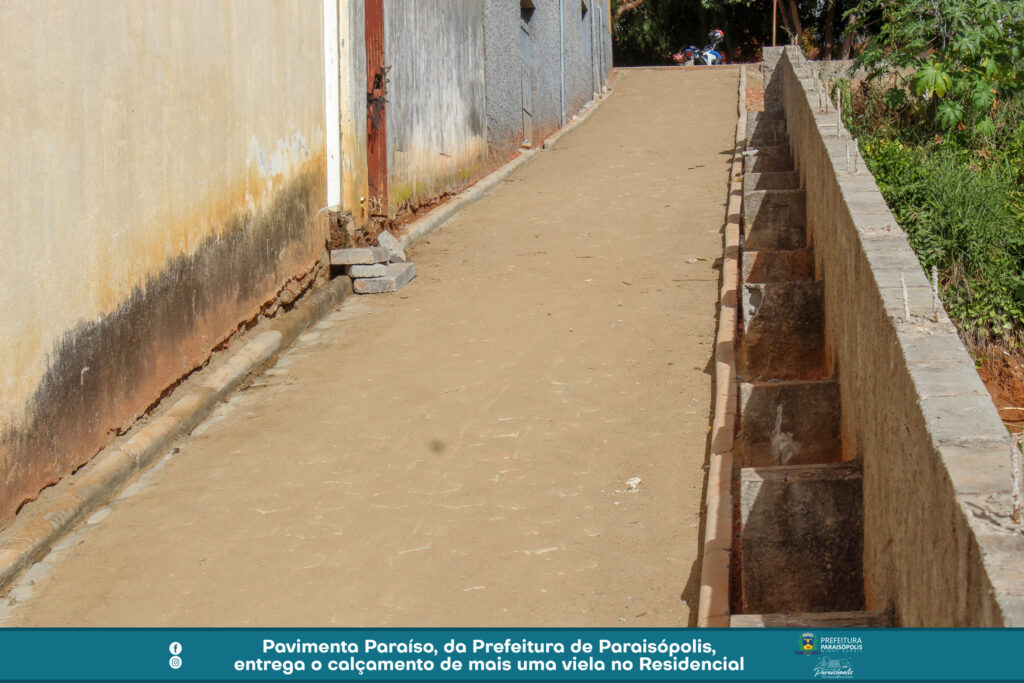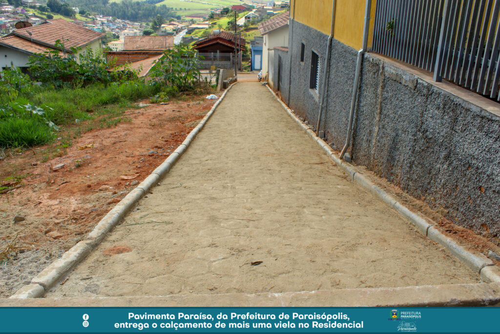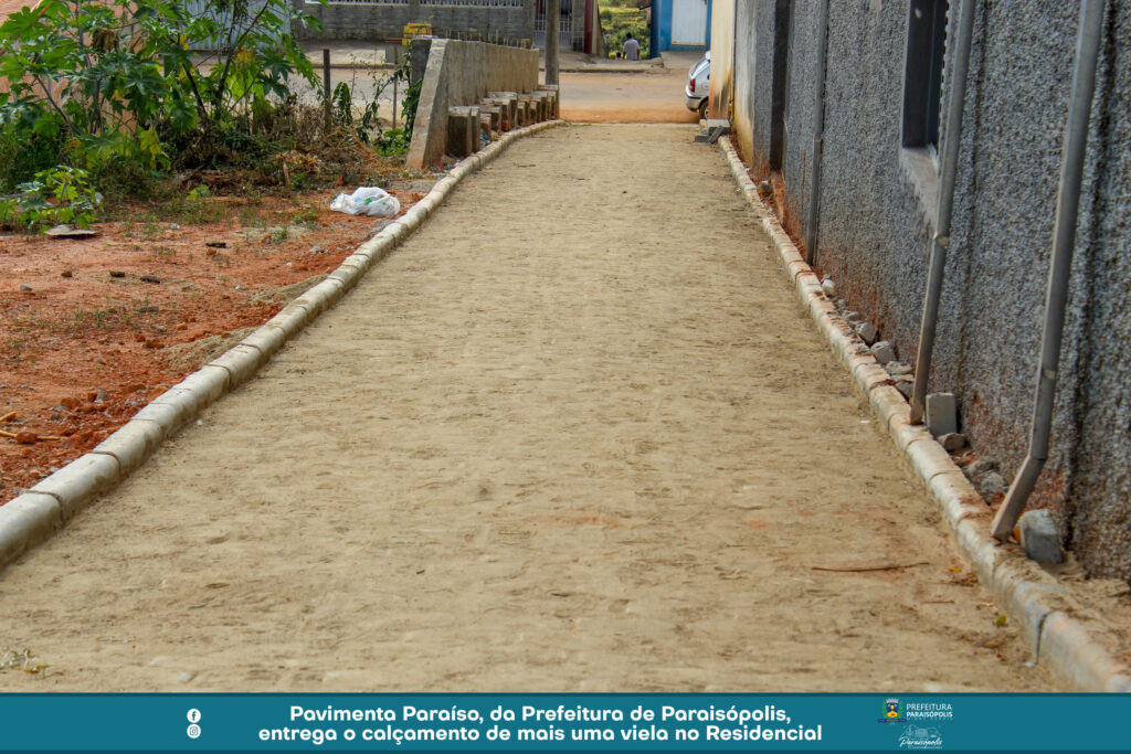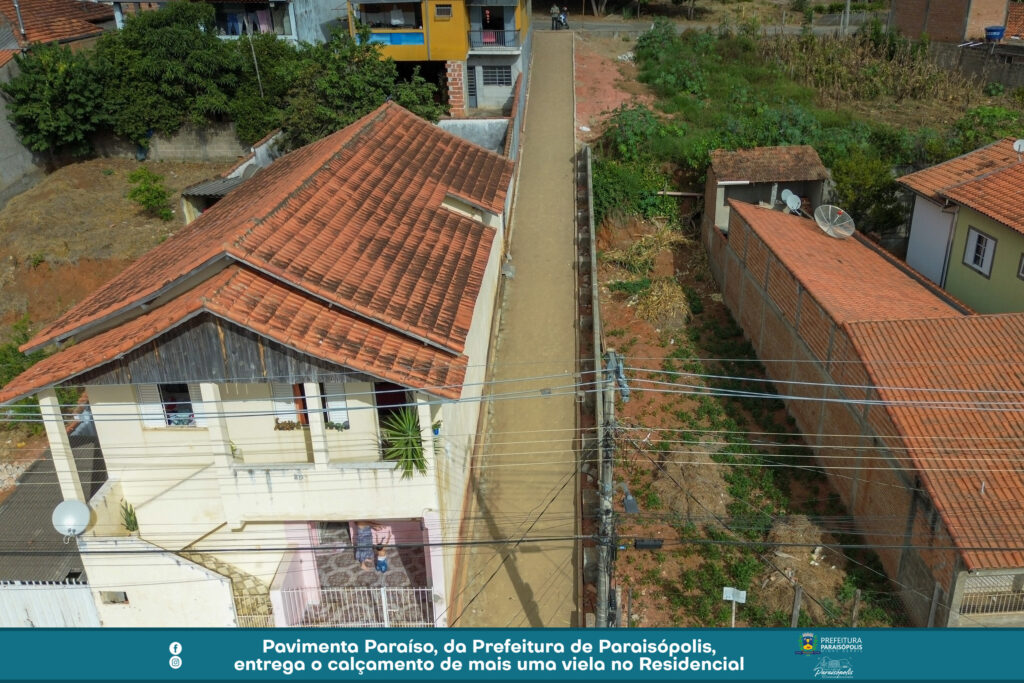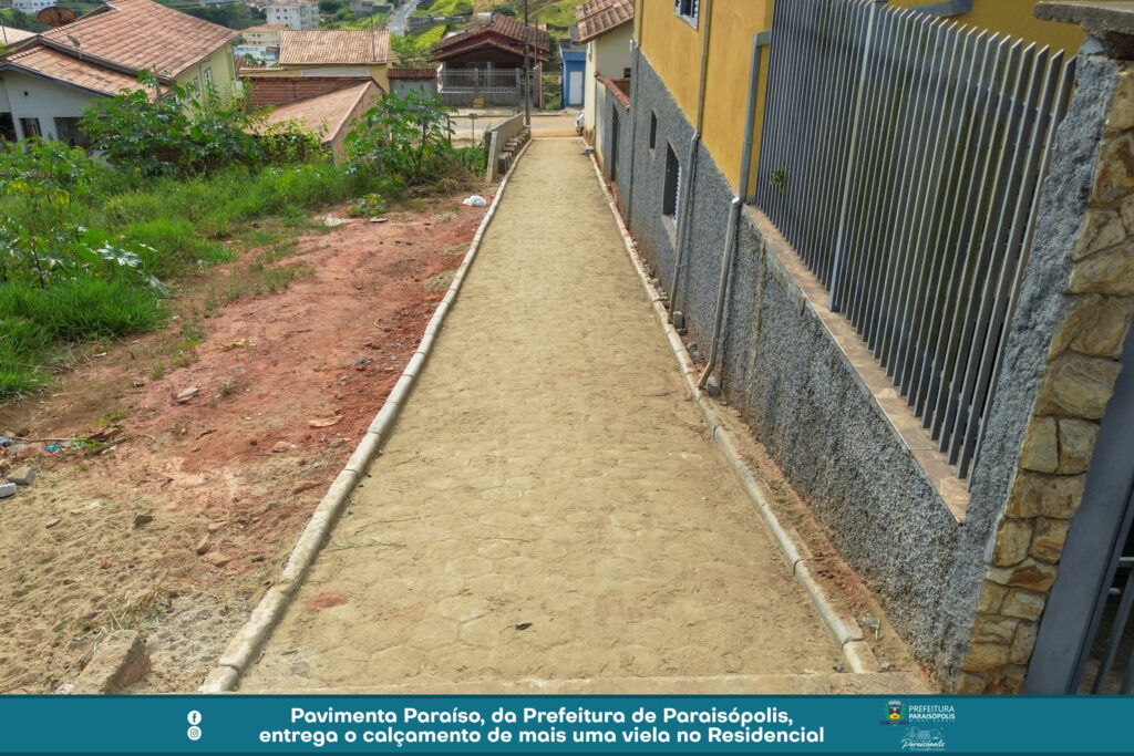 A Prefeitura de Paraisópolis finalizou o calçamento de mais uma via, através do projeto Pavimenta Paraíso. Agora, a viela entre a Avenida Avelino Ribeiro Filho e Luzia Braga Dias ganhou pavimentação em bloquetes e foi entregue à população.