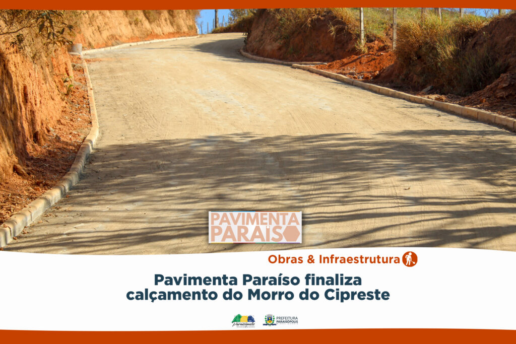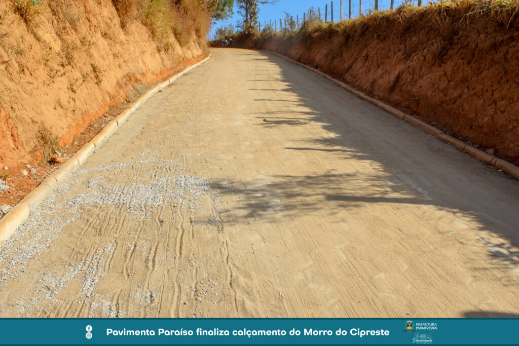 O programa de pavimentação de vias, criado pela Prefeitura de Paraisópolis, entregou mais um local calçado. O Morro do Cipreste, situado na zona rural, recebeu calçamento em bloquetes em cerca de 170 metros de extensão.