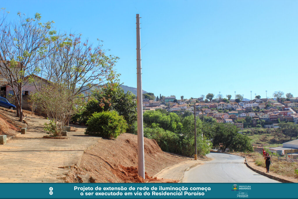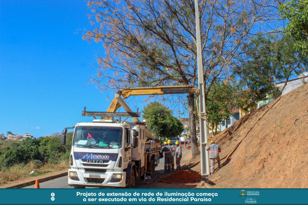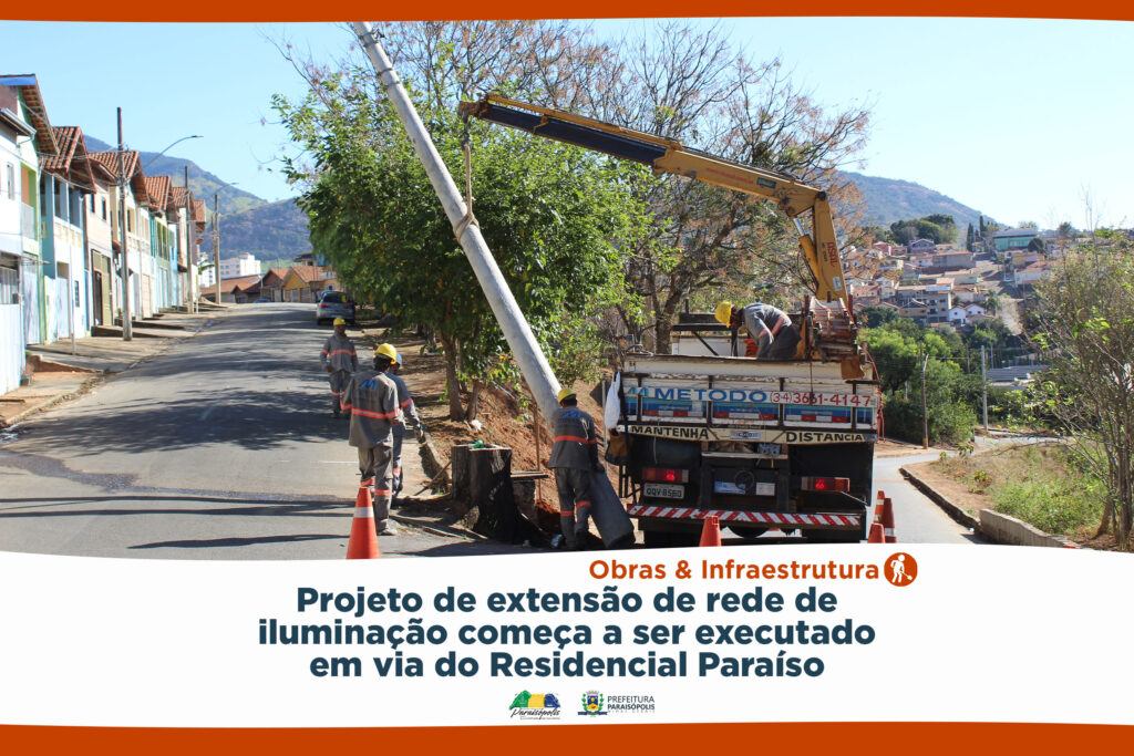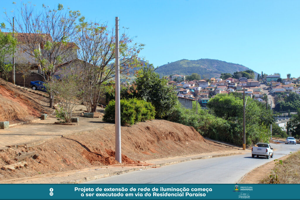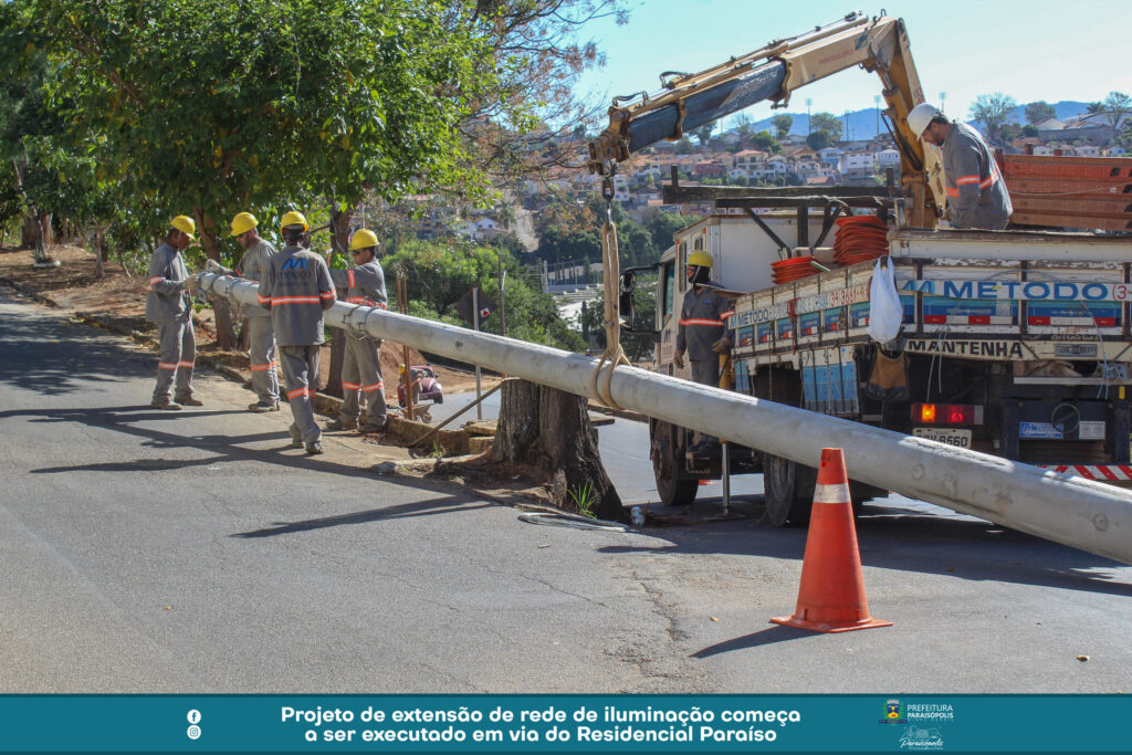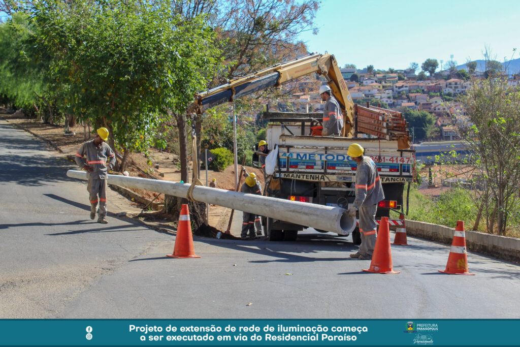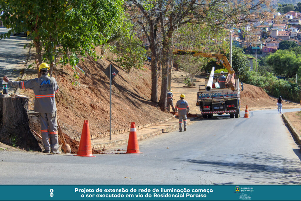 Um importante projeto de iluminação pública é feito na Rua José Caetano da Costa, no Residencial Paraíso. A via recebe a extensão de rede planejada e solicitada pela Prefeitura de Paraisópolis à CEMIG.