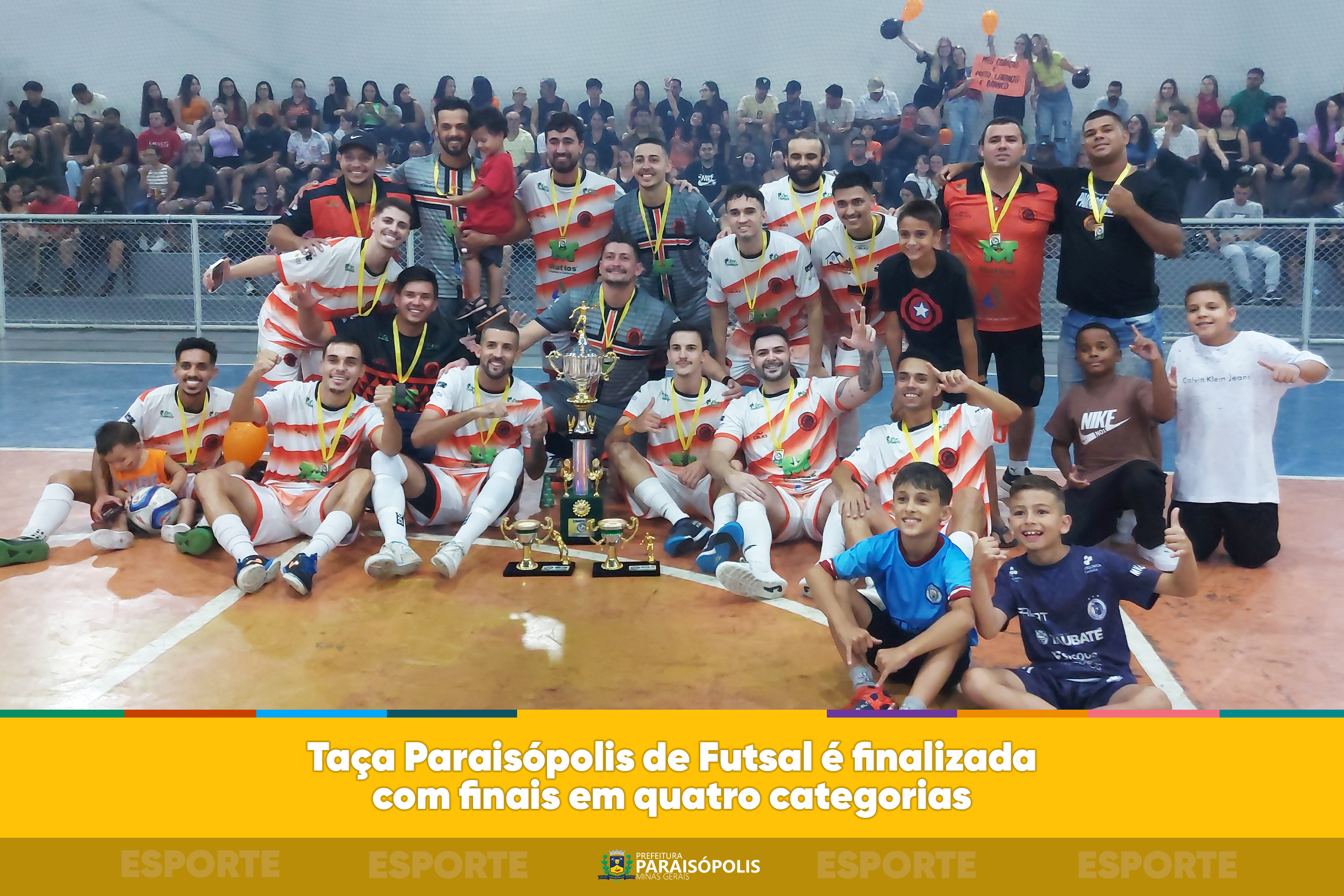 A Taça Paraisópolis de Futsal 2025 foi encerrada na sexta-feira (24). As finais de quatro categorias – municipal, regional veterano, regional feminino e regional masculino – aconteceram no Poliesportivo Professor Helcias Rocha, que recebeu um ótimo público.