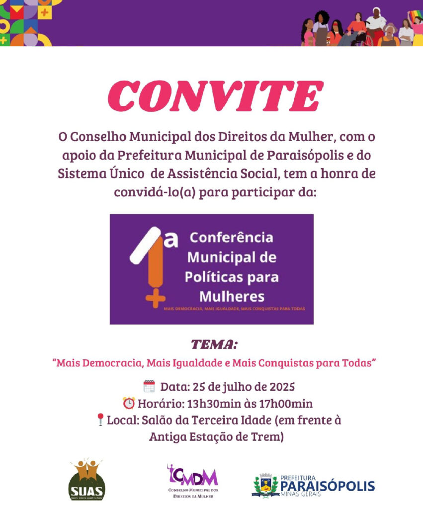 Tema: “Mais democracia, mais igualdade e mais conquistas para todas”.