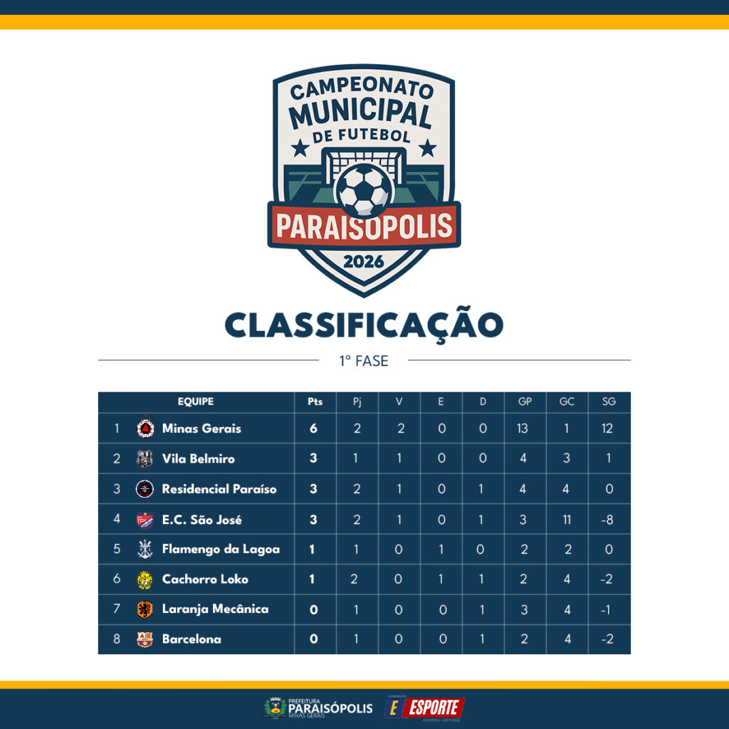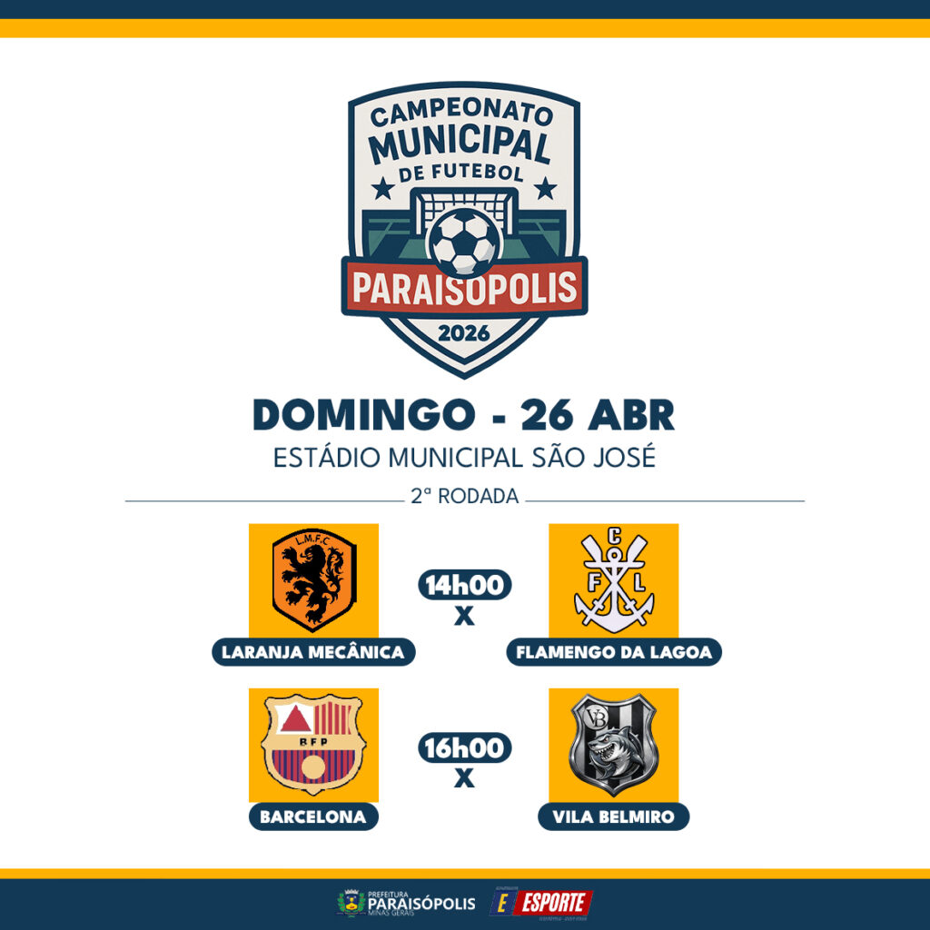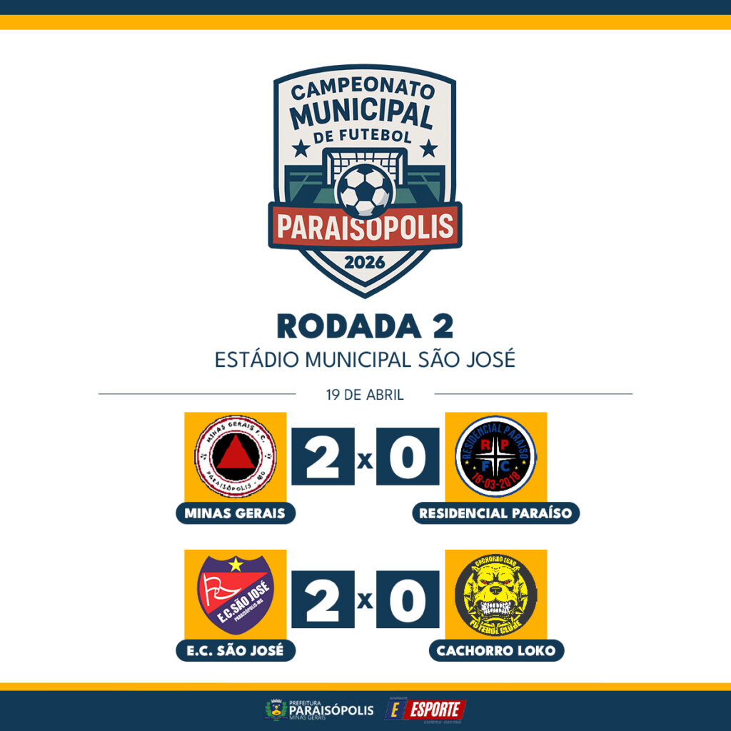 ⚽Confira os resultados da rodada 2 do Campeonato Municipal de Futebol de Paraisópolis – 2026.