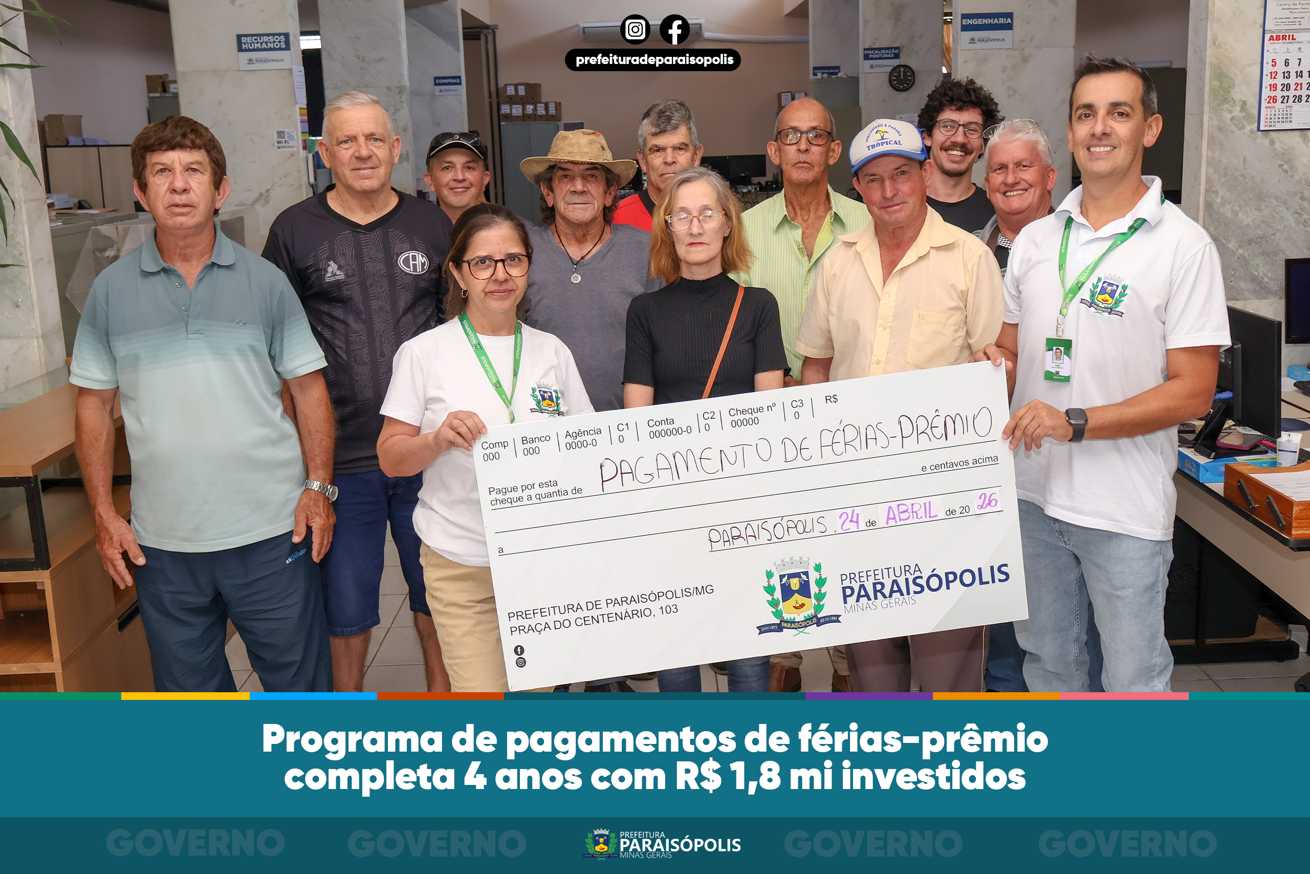 A Prefeitura de Paraisópolis completou mais uma etapa de pagamentos de férias-prêmio a servidores aposentados e exonerados.